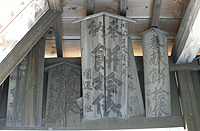 ▲歌舞伎舞台の天井には奉納の証が。