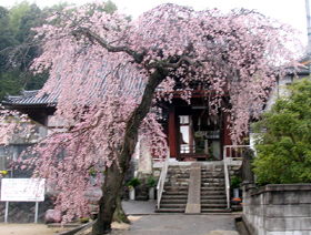 ▲千光寺のさくら、「今年は樹木医さんに治療してもらい、少し隙間がありますが、色は昨年より鮮やかですね。」と住職さん。本当に今年はピンク色が鮮やかです。(2010.3.24)