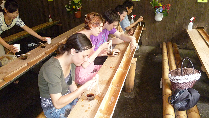 ジンギスカンを完食できて大満足!あ=お腹いっぱい!とその後に「えっ!次にまだ流しそうめん!?」 食べ物の量にびっくり! 流しそうめんをつかむのに無言・・・・・。