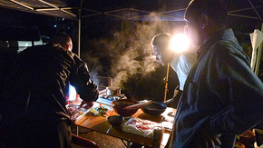 麺やタレが数種類持ち込まれ焼いては食べ、食べては焼き・・・。