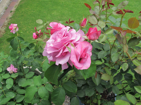 今年も見事なバラが咲いていました。横山さんにお訊ねすると「少し終わりの方ですがどうぞどうぞ」と笑顔で応対くださいました。庭園の芝が草1本も無いほど綺麗に手入れしてあり驚かされます。バラは大輪の花が主で見事です。