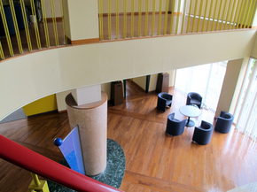 予てから河原先生にお願いしていた「津山高校創立100周年記念館」を取材させていただいた。とても立派な建物ですが、敷地は嘗ては美土路邸(美土路昌一<元朝日新聞・全日空社長、津中5期>)だったそうです。今は生徒集会や講演会、発表会、部活動、同窓会の会議などに使用しているのだそうです。(2012.7.30)