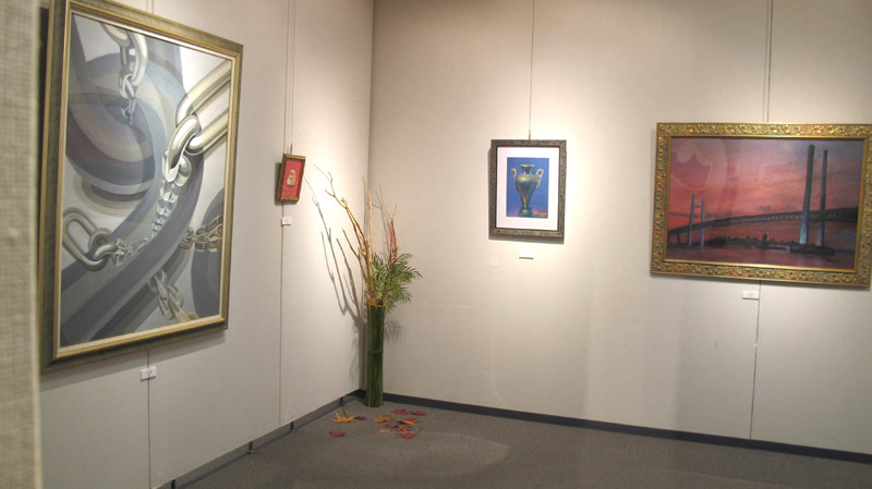 楽先生の作品展示風景と楽ART倶楽部のみなさん