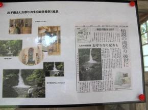飛び散るしぶきと冷気には、夏の暑さを忘れさせ、紅葉の秋もまたすばらしい。この滝には、恋しい人を求めて飛び込んだという、お姫さまの伝説もあり、旧暦の六月一日には、その霊をなぐさめる滝祭りがあります。新庄村 (案内板より 2013年12月8日取材)