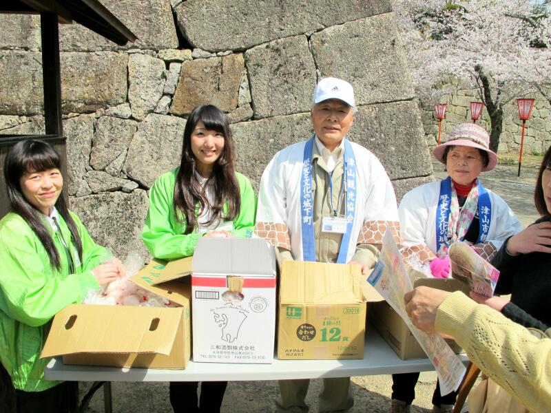 」2014年4月1日(火)晴天。この日、津山城「鶴山公園」では津山さくらまつりのオープニングセレモニーが執り行われました。大勢のお客様、関係者の皆様でにぎわっております。さくらの花はまだ五分咲き?でもここのところの陽気で急速に満開を迎えそうな勢いです。また、園内では春休みもあってか子どもの姿が多く見え、微笑ましい限りです。