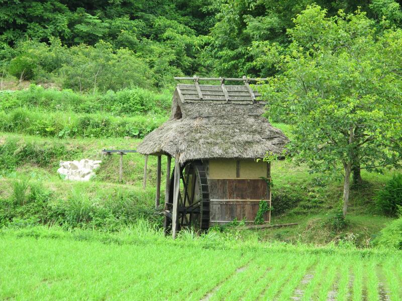 桐の木水車は津山市内で現役で稼働している共有の米搗き水車としては唯一のものです。昭和30年頃まではどこの村々でも共同で水車が維持管理され、村の生活と田園風景を構成していました。この桐の木水車も昭和初期に建設され地元「水車講連中」により維持されてきました。