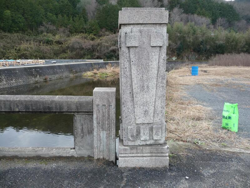 藤の棚橋は、昭和2年(1927)3月建設。旧国道53号(市道佐良山181号線)沿いに皿川に架かる長さ24.3mのRC桁橋である。国道は幅員を広げるため、橋を含む250mほどの区間が東側に新設・移行され、現在では近隣住民が利用するのみとなっている。親柱や束柱には桃色花崗岩の万成石が使用され、アールデコ風のデザインが施されている。橋脚は昭和初期らしい華奢な印象の形状で、架橋当時のままである。高欄の大きな開口部には鋳鉄グリルがはめ込まれていたそうだが、現在は戦時中に供出された痕が痛々しく残るのみである。(文:岡山県の近代化遺産より)