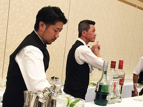 カクテルブースにもたくさんのお客様が並んで、バーテンダーはシェイカーを振りっぱなし...。