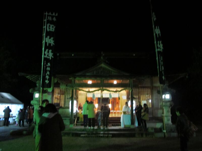 2016年1月1日の田神社の初詣風景の取材です。小雨がぱらついていましたが、見上げると夜空にはお月さまや星が輝いていました。午前1時前でしたが次々とお参りされる地元の方に混ざって昨年の取材御礼をしてきました。また、甘酒とおでんのお接待があり、甘酒をいただいてほっこりして田神社を後にしました。(2014年4月28日田神社取材)