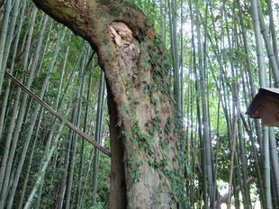 久米町南方中の国道181号線の南側に長谷の集落があり、そのほぼ中心に岸上集落の鎮守の森があり、その神木である。