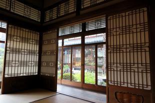登録有形文化財の城東むかし町家(旧梶村家住宅)の障子の桟が芸術的です。