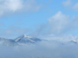 この角度は、高野山西から撮ったものです。雲の上にある那岐連峰です。