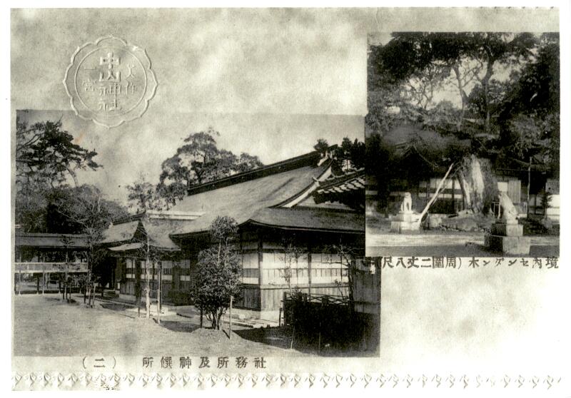 上記の写真は、大正3年のハガキだそうです。中山神社の狛犬は昔拝殿前に居たのですが、現在は神門より外に移動されています。