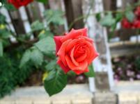 門の入口に咲くバラの花です。 日本庭園も綺麗です。