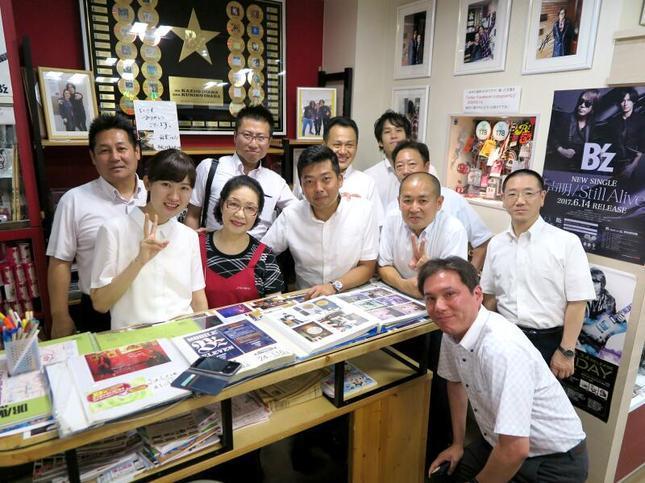 2017年7月のイナバ化粧品店内です。「たまには、男の方に囲まれるのもいいものね。」とご満悦なママ。今日B'zは、鹿児島県日置市の伊集院文化会館でのコンサートの日ですが、鹿児島市の地震のニュースにママは心配そうです。早速ファンの方に電話をしてみたそうですが、何とか大丈夫そうなので少し安心しているとのことでした。この先災害のないことを祈るばかりです。