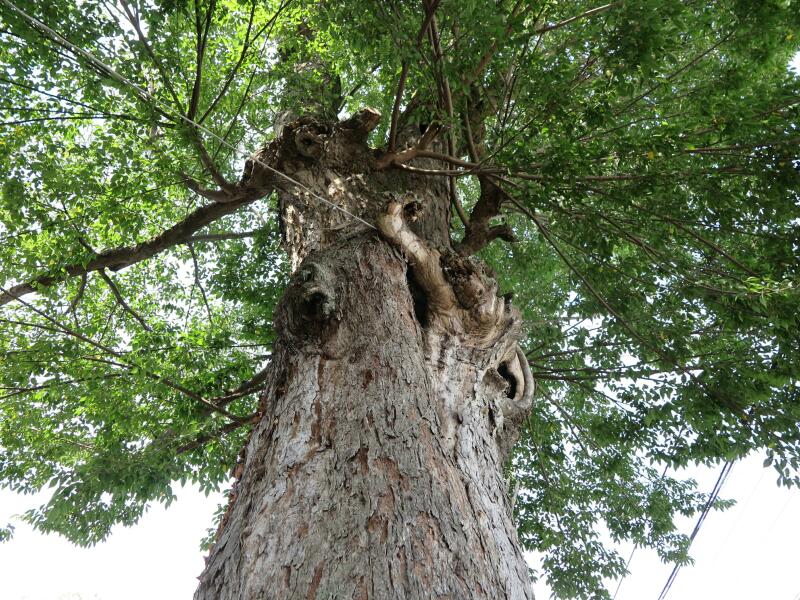 徳守神社の石垣にもたれる椋の木(2017.9.3) 2017年9月9日の椋