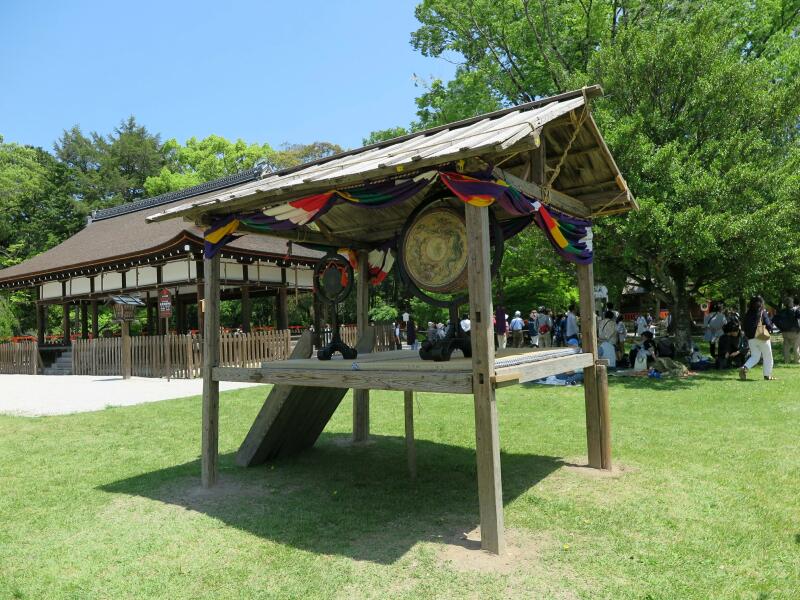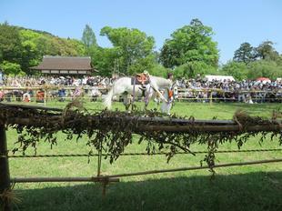 他に重視される事は、五月一日の足汰式の手水から五日の競馬奉幣前の陰陽祓に至る迄、一連の行事には「祓」が実に十数度行われる事である。これ程迄に祓清めの儀式が厳重に行われる事は、神への畏敬の念も然る事ながら、「陰陽道」の思想・作法が当神社の競馬に於いて今尚色濃く残っている証と思われる。(文:上賀茂神社「賀茂競馬」パンフレットより転載)(2018年5月5日撮影)