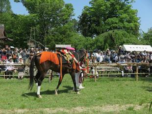 尚、今は廃れたが、鎌倉時代後期の当神社の年中行事を記した『嘉元年中行事記』五月五日の項には、競馬終了後、乗尻が往時の競馬節会にも奉奏された舞楽「蘭陵王(左舞)」と、答舞である「納蘇利(右舞)」を奉奏したと記載されている事は注目に値する。