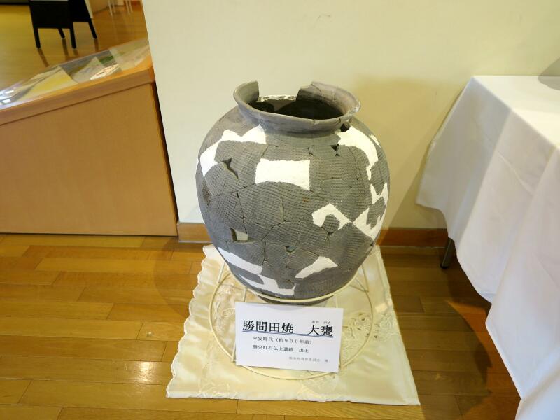 勝間田焼きは平安時代末から鎌倉時代にかけて美作地域一帯で使用された焼物で、勝間田盆地の山間部一帯を主な生産地として発展した、青灰色で非常に硬質な焼物です。椀・小皿の食器類からこね鉢等の調理具、壷・甕等の貯蔵具など多様な製品を焼成しており、主に美作地域一帯から山陰地域にまで広域に流通していました。しかし、鎌倉時代までで生産されなくなり、記録等にも残っていないことから幻の陶器と称されています。