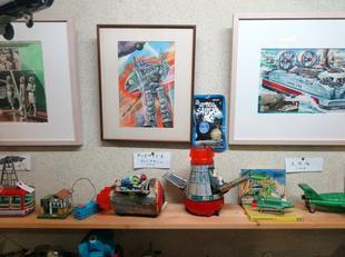 昭和30年頃の小学校で使っていたものや、国内で動くのは最古級とされる自動販売機などやアイスキャンデーの自転車など昔懐かしいものがあります。また、少年、少年画報、少年クラブ、少年サンデー、少年マガジンなどの漫画本、ウルトラマンをはじめ、キャラクター達が所狭しと展示されています。