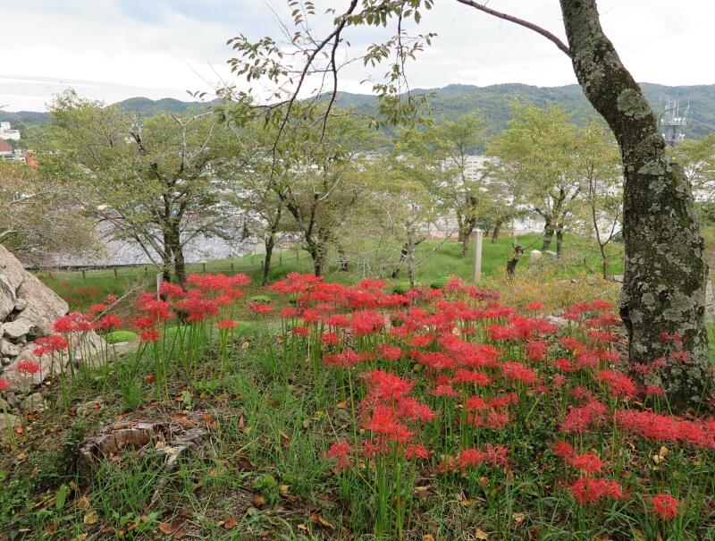 2018年9月26日、曇り空の津山城(鶴山公園)です。すでに富士山には初冠雪があったようですね。そんな気候の津山ですが、もう、彼岸花は終わりを告げているだろうと思いながら上がってきました。所々に花盛りの箇所があり、さっそく教えて頂いた職員さん(感謝)に許可をもらって撮って来ましたよ~。ほんと、いつ来ても新たな発見があるものですね。