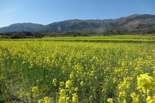 真っ青な青空の中、那岐山麓に向かって真っすぐに伸びる道の両脇には黄色の菜の花が美しく咲いてとてもきれいでした。また、21日には奈義町の特産品が味わえるグルメテントやイベントもあったようです。