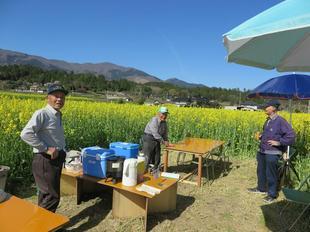 滝本の菜の花まつり会場でおいしい飲み物のお接待を受けました。