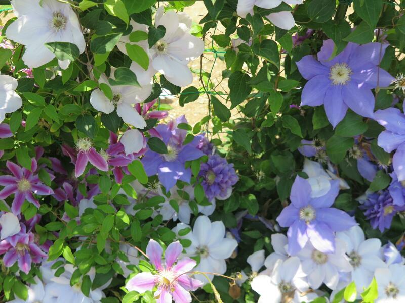 珍しいバラやクレマチスの花が美しく咲いています。