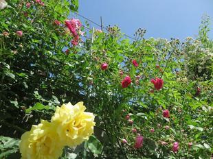 高取さんのお庭全体には今が見ごろの色とりどりのバラの花が満開で見ごたえあります。