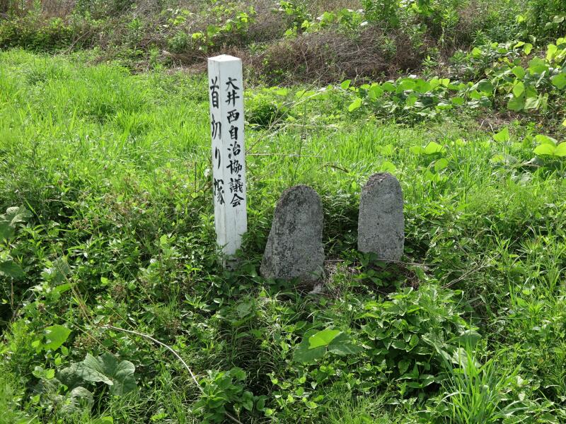 天正の頃(1500年代)、この地で捕らえられた謀反者の塚といわれ、近くに「腹切り田」という所もあった。北側の山裾にあったが中国自動車道工事のため現在地に移された。(文:出雲街道の史跡と文化財 津山市大井西自治協議会編)(2019年6月23日撮影)