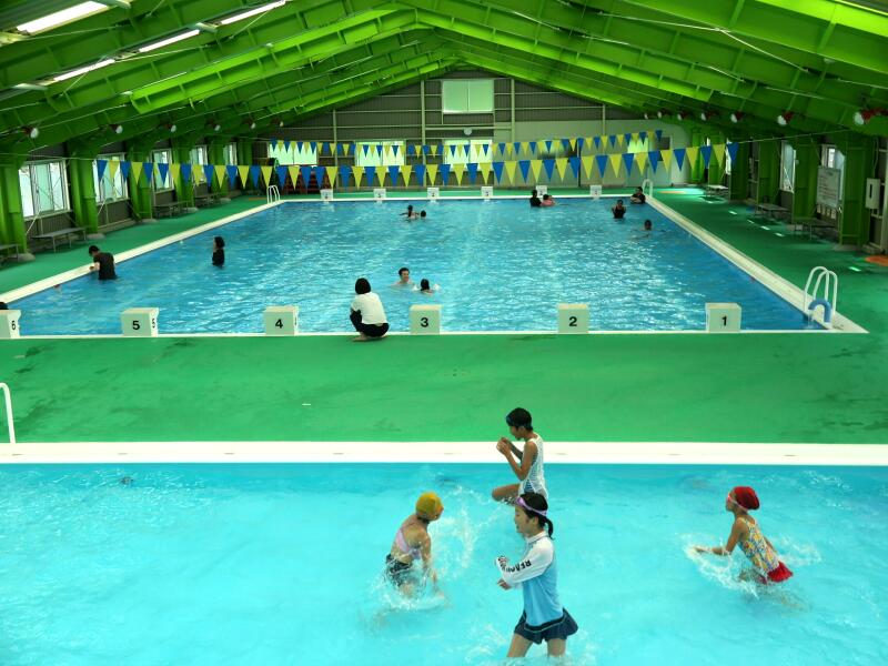 館内のプールは6コースあり、25mプールと幼児用プールがあります。(温水の設備がないのでプールは6月1日から9月30日までとなっています。)