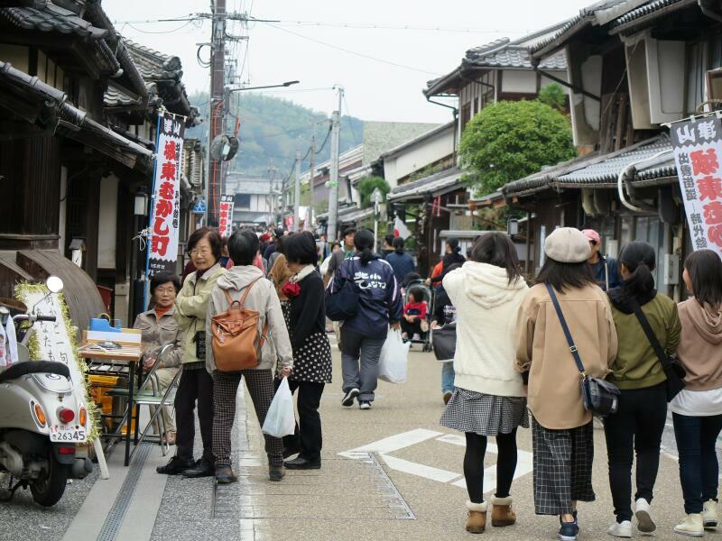 2019年11月3日、今年も城東伝統的建造物群保存地区で、出雲街道津山城東むかし町祭りが執り行われました。このお祭りは、旧出雲街道を歩行者天国にし、「江戸時代にタイムスリップ」をコンセプトにした時代行列です。橋本町~東新町の区間では屋台や物産店、フリーマーケット等が出店されていて楽しんできました。また、「和っしょい!津山」の総踊りが祭りをより一層盛り上げていました。