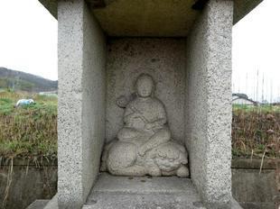 寛政のころ泰禅上人が大阪で鴻池家の子供を助ける。謝礼の小判を辞退し、石の祠を建立し、これが湯大明神であると伝承されている。(文:『出雲街道旅日記(万の峠~津山)』より)(2020年3月28日撮影)