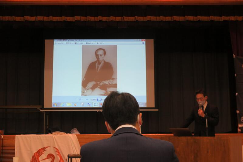 箕作阮甫とその家系と題して、箕作家のルーツをスライドで分りやすく説明くださいました。