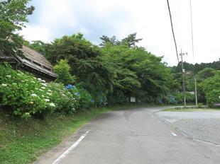 アジサイ約3,000株、約30種類。普門寺境内と、周辺一帯に植えられています。お寺の建物と、周辺の茅葺き屋根との景観が素晴らしいと好評です。