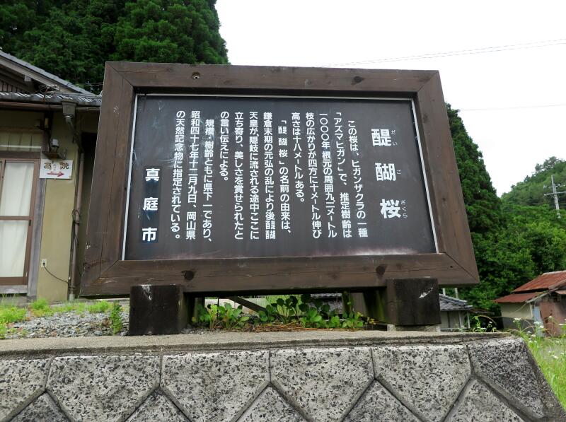 「醍醐桜」の名前の由来は、鎌倉末期の元弘の乱により後醍醐天皇が、隠岐に流される途中ここに立ち寄り、美しさを賞せられたとの言い伝えによる。