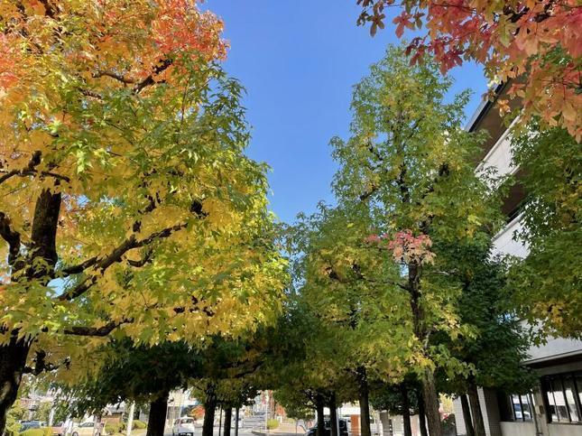 津山市役所前のモミジバフウの紅葉