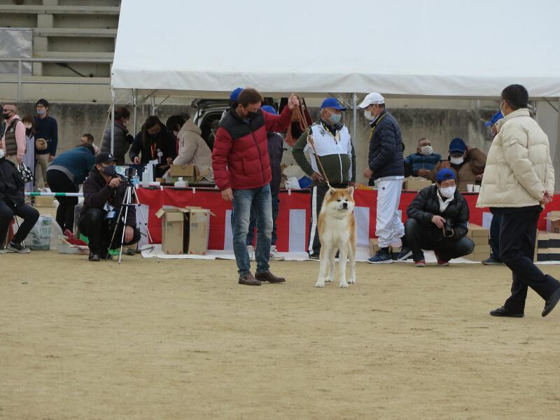 受賞した秋田犬です。 審査を終えた審査員の皆さんに拍手で労を労う