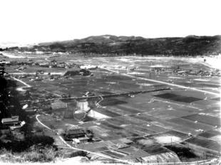 写真右:石山八畳岩から見る西寺町を見る