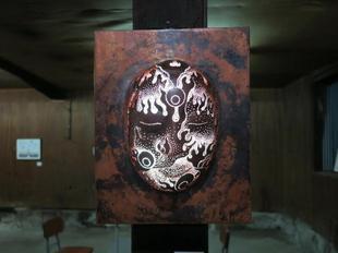 群馬県在住の画家 金原寿浩(ジャスミン)さんが、墨や木炭を使って描いた東日本大震災や沖縄の基地問題などをテーマにした絵画を中心に48点が、第一会場「NishiIma25」と特別第二会場「Nishitera no 蔵」で6月12日まで展示されています。