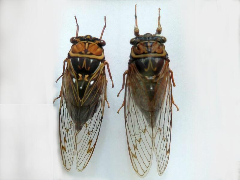 左:コエゾゼミ 右:リュウキュウクマゼミ 左:オキナワヒメハルゼミ