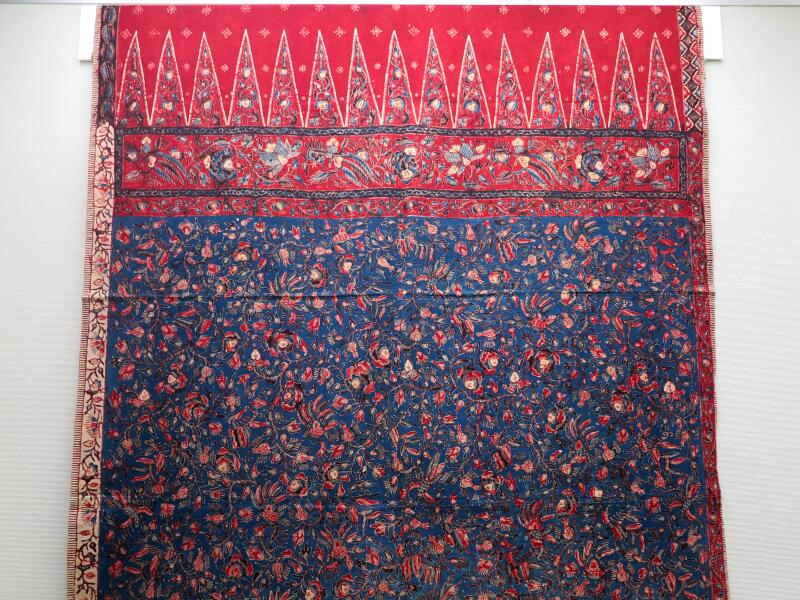 手紡ぎ手織りの木綿布に蝋を置いて藍で染める。ジャワ島東部ケレック地方の更紗。