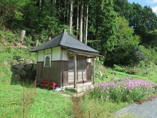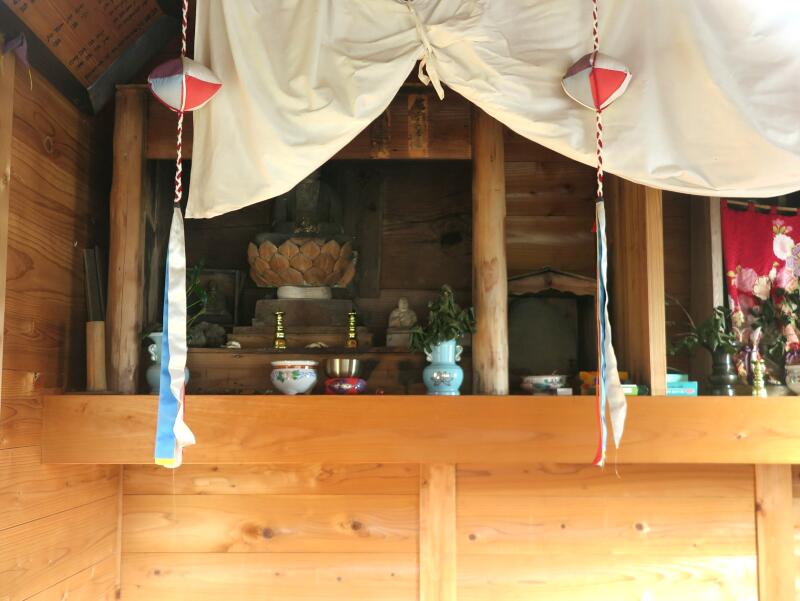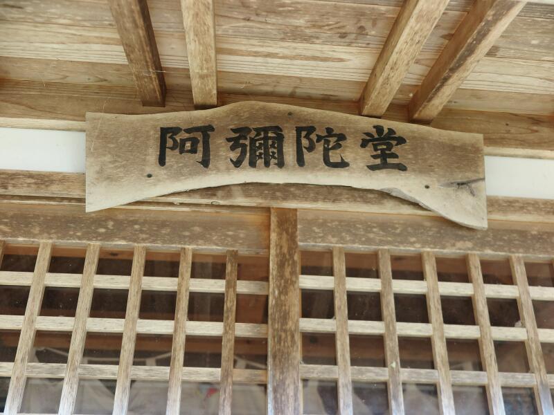 お籠りや数珠まわしも行われていたが、数珠まわしは堂内が狭いので、中でちょっとまわしてあとはかついで外でまわしていた。ここも加茂谷88ヶ所霊場の一つとされ、阿波村内巡礼の最後の場所となっていた。本尊は阿弥陀如来(木彫蓮華台立像金色、高さ52㎝を厨子に納める)(文:『阿波村誌』より)(2020年11月14日撮影)2022年現在は大高下薬師堂も合祀されているようです。