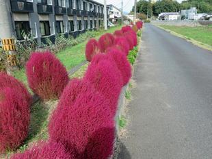 2022年10月27日皿川沿いの真っ赤に染まったコキアが見ごろを迎えていました。