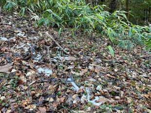 サムハラ神社を後にするママです。 ふと見ると雪が残っています。