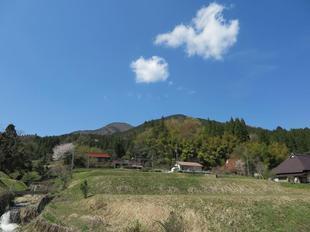 2023年4月9日満開の尾所の桜の周りの景色(2016年の青々とした尾所のさくらの様子)