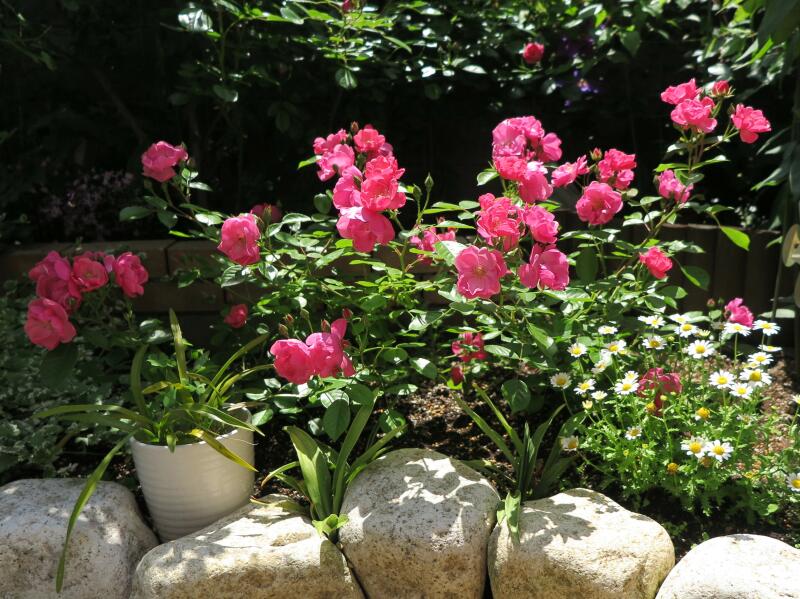 2023年5月12日お電話頂いて駆け付けると、お庭には既に満開になっているバラの花や、これから咲くであろうバラの花が出迎えてくれました。聞けば30数種類のバラの花が植えてあるそうです。程よい広さの庭には工夫を凝らして植えられた様々な花が咲き乱れています。