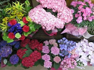 2023年5月14日はHappy Mother's Day! です。イナバ化粧品店内でも浩志さんを始め、全国の大勢のファンの皆さんから届いた花束であふれています。まず、お店に着くとすぐ目に付いたのが、ママの髪の毛の色です。13日に美容室に行ってきたばかりの紫色、なんて素敵な色でしょう。