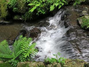 一の滝8m、二の滝15m、三の滝36mの落差があり、春夏秋冬それぞれに趣の異なる風情がある。特に三の滝は三段階に滝壺を持ち特異な眺望です。二の滝脇には竜神宮があり、古くから雨乞い、眼病などに霊感あらたかといわれています。