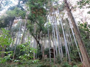 大きな木に囲まれているので真正面ではお堂が撮れません。